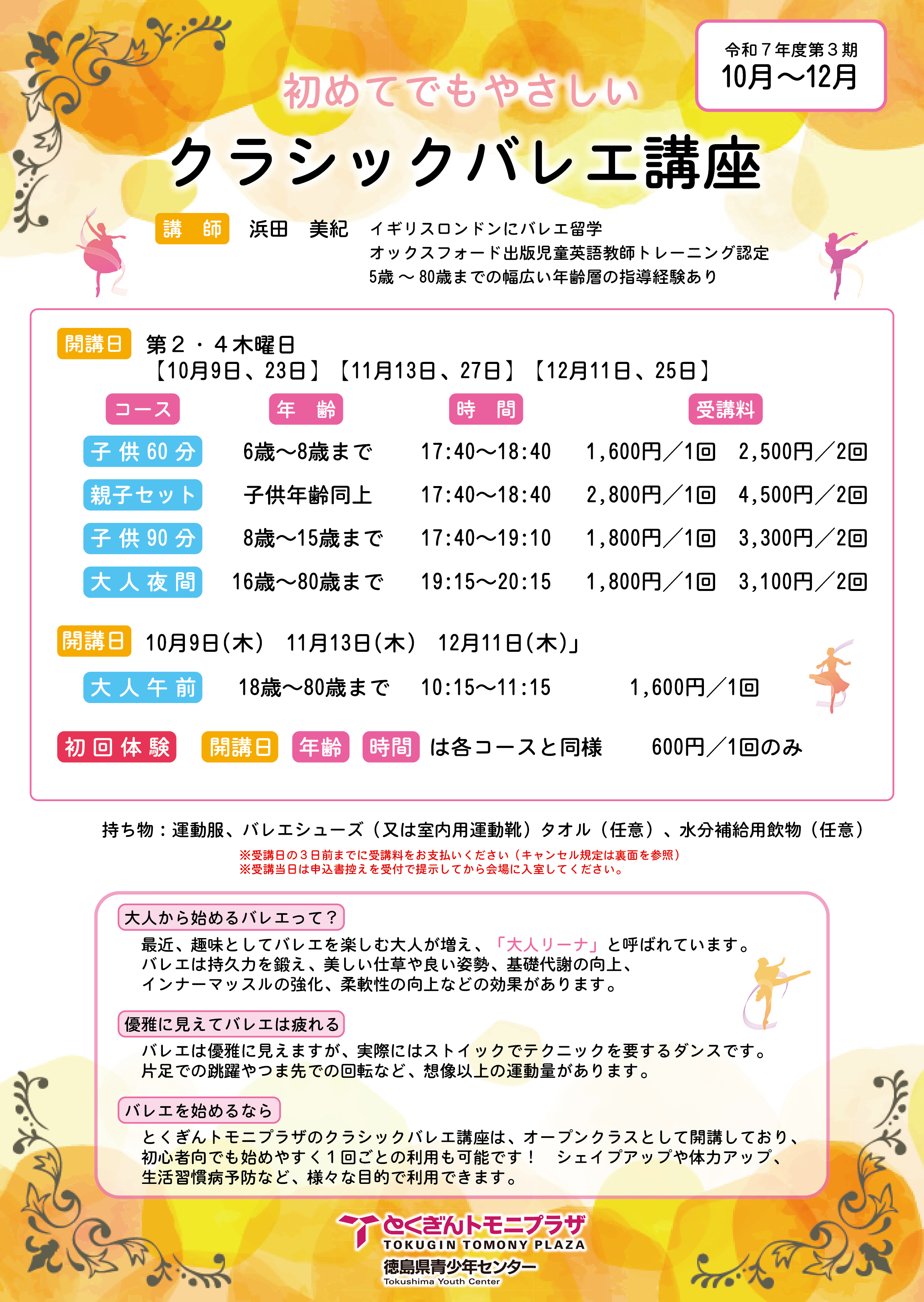 2025/10/04 【10〜12月】初めてでもやさしいクラシックバレエ講座 2025/10/04 【10〜12月】やってみよう!太極拳 〜入門・初級コース〜