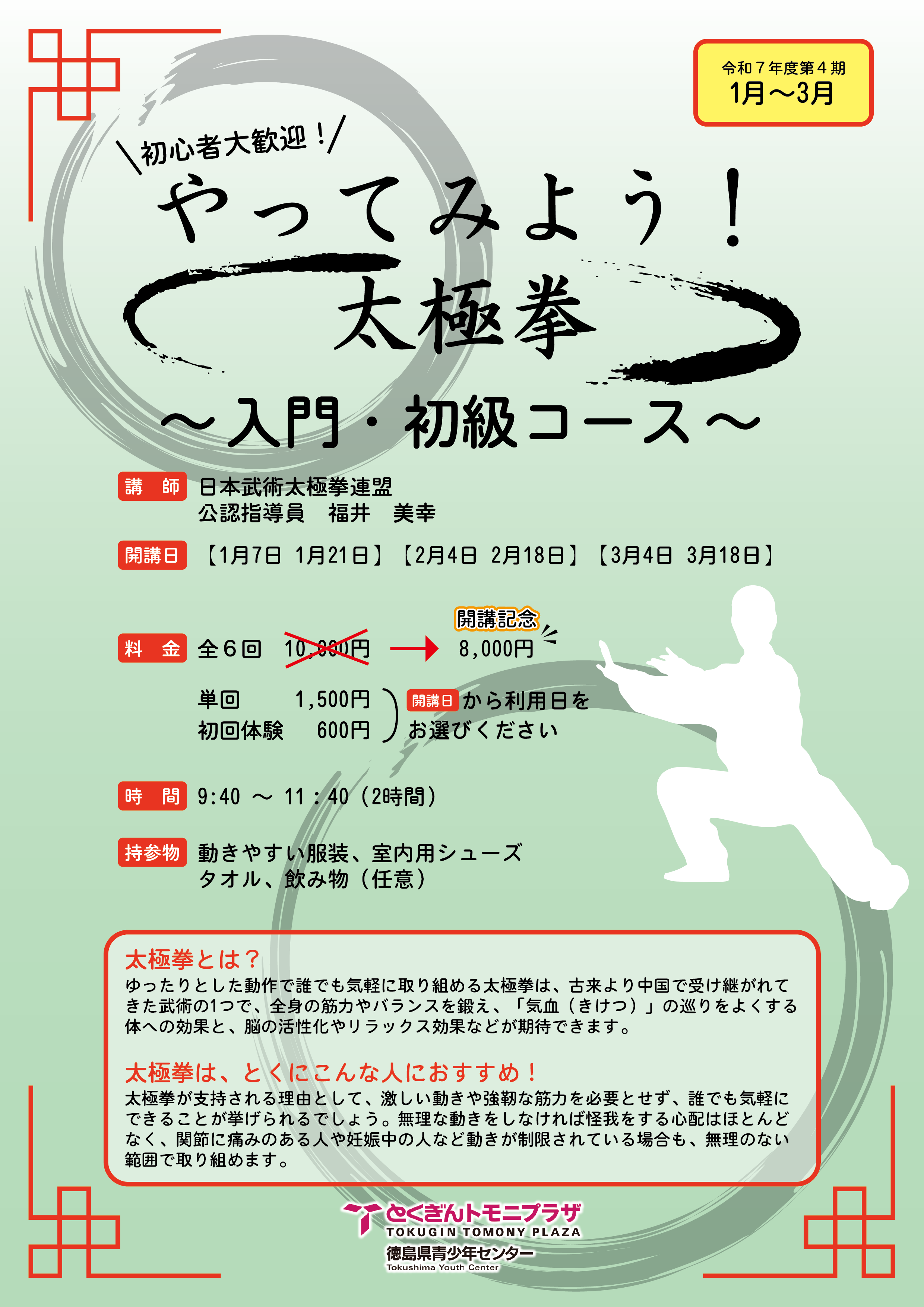 【1月〜3月】やってみよう!太極拳 〜入門・初級コース〜